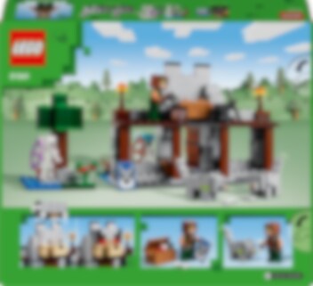 Barn som älskar action- och äventyrslekset, leksaksfästningar och Minecraft® karaktärer får allt detta och lite till i LEGO® Minecraft Vargfästningen (21261). Denna Minecraft vargpresent till barn från 8 år är en handgriplig dataspelsleksak och ett kreativt bygg- och lekset med en utforskarhjälte och actionstrider. Barn bygger en bas till vargtämjaren med ett stort varghuvud ovanför dörren och har sedan roligt när de ändrar vargens ansiktsuttryck från vänligt till argt. Inuti finns en arbetsbänk, en masugn, ett städ och, för första gången i ett LEGO Minecraft set, ett smidesbord. I en kista med förnödenheter finns en netherittacka, som barn kan använda för att smida ett svärd, söta bär och ben som används för att tämja den vilda vargen. Utanför finns en skogsdel med träd, en sten, svamp och en buske med söta bär. 2 Minecraft skelett går omkring i skogen – ett med en förtrollad pilbåge och det andra med pil och båge och en diamanthjälm. För mer digitalt skoj kan byggare också använda den intuitiva appen LEGO Builder.