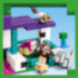 Ta hand om djurungar i LEGO® Minecraft® Djurhemmet. Här finns 3 roliga områden att utforska – ett inhägnat lekområde med ett matförråd, ett picknickområde utomhus och en mysig matta där trötta djur kan vila – dina gäster kommer aldrig att vilja åka härifrån! Setet innehåller dessutom många mobs som du kan använda för att utöka andra LEGO Minecraft set (säljs separat), som till exempel Sköldpaddshuset (21254).