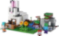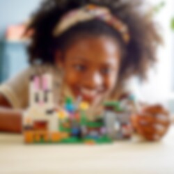 Minecraft® spelare och kaninälskare från 8 år kan njuta av oändlig kreativ lek med LEGO® Minecraft Kaninranchen (21181). Bygg, bekämpa fiender och ta hand om kaniner Barn kan bygga en stor kaninformad ranch där de kan ta hand om sina Minecraft kaniner. Setets öppna baksida och avtagbara tak gör det lätt att möblera och leka fantasifulla rollekar inuti. Utanför finns det 2 kaniner att mata med morötterna som växer på gården bredvid. På baksidan finns en spak som barn kan dra i för att få kaninerna att hoppa. I närheten finns en grotta där en ikonisk Minecraft fiende gömmer sig - en zombie. Barn måste besegra den med ett svärd för att kunna återvända till sina älskade kaniner. Detta mycket ombyggbara set inspirerar till oändliga kreativa lekar och sätter all spänning från Minecraft spelet i barns händer.
