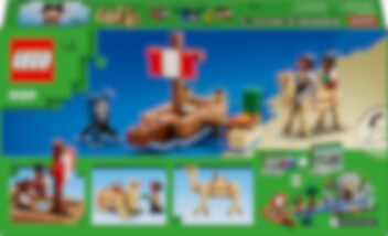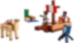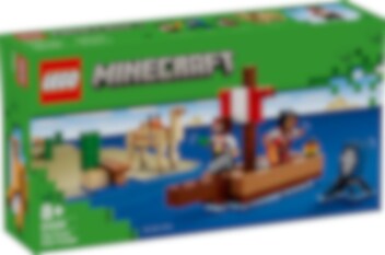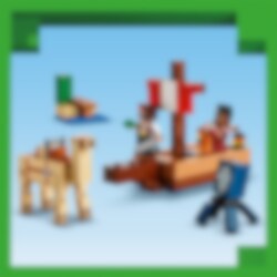 Kliv ombord på skeppet med 2 LEGO® Minecraft® pirater och hissa seglen för ett äventyr i ökenlandskapet. Vad är det som lurar i vattnet? Det är en bläckfisk! Skynda dig till torra land, där du kan ta hjälp av kartan, sadla kamelen och rida vidare mot ditt nästa episka Minecraft äventyr.