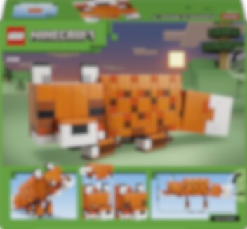 Bygg en imponerande räv från Minecraft att visa upp! Räven (21588) är en stor detaljrik figur med rörliga ben, vridbar hals och ett huvud som kan visa räven med ögonen öppna eller slutna. Ställ in den stående och vaken, sittande med lutat huvud eller liggande och sovande. 497 bitar för Minecraft-fans och byggare från 10 år.