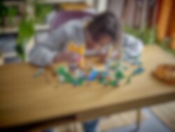 LEGO® Minecraft® Skaparlådan 4.0 (21249) sätter 2 iögonfallande lekset och oändligt fritt byggskoj i händerna på Minecraft spelare från 8 år. Minecraft 2-i-1-set och kreativ skatt Detta oändligt mångsidiga lekset erbjuder 2 olika scenarier som barn kan bygga: tornen vid floden, en fästningsliknande byggnad som kan användas för att försvara sig mot attacker från en zombie och en Creeper, eller kattstugan, som består av ett stort kattformat hus med en kattlekplats bredvid. Dessa distinkta byggen, och modellförslagen som är utformade för att inspirera barns kreativitet och de otaliga byggen de hittar på själva, bebos av ikoniska figurer och mobs från spelet, som Steve, Alex, en zombie, en Creeper, katter och får. En mängd Minecraft detaljer och funktioner, som exploderande TNT, gör detta episka lekset ännu mer realistiskt. För ännu mer digitalt skoj kan byggare zooma in, rotera set i 3D och följa sina framsteg i den roliga, intuitiva appen LEGO Builder.