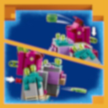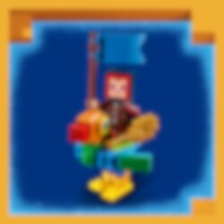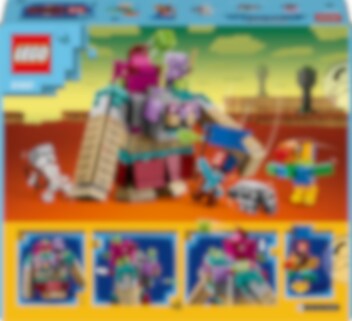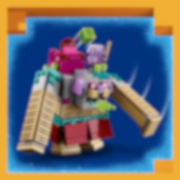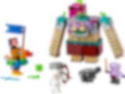 Minecraft Legends® Slukaren kommer stormande! Med kaskadkräkningar från munnen, slemmissiler som avfyras från ryggsäcken och enorma armar som krossar allt i dess väg – vem ska stoppa den vidrige Slukaren? Jägarhjälten kommer ridande på Stornäbb. Med viftande flagga och ett diamantsvärd vid sin sida spelar de på en luta för att locka fram ett skelett och en kullerstensgolem. Låt striden börja!