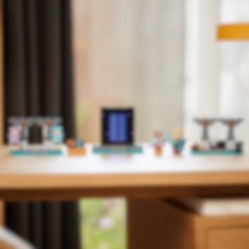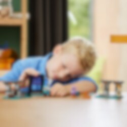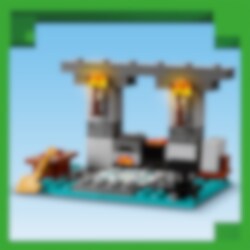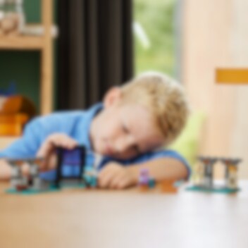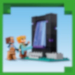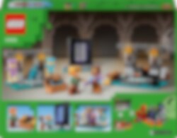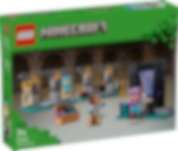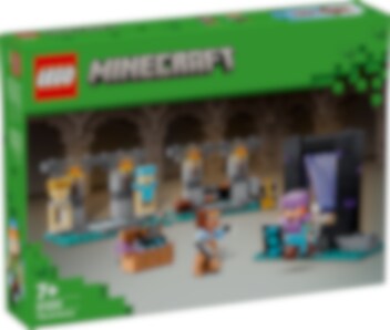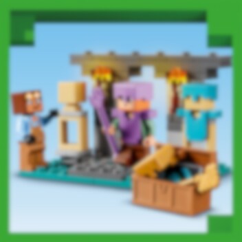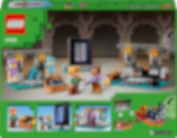 Gå in i Minecraft® Vapenförrådet, där vapensmeden arbetar med städ, smältugn, slipsten och lavafylld kittel. Akta så att du inte spiller lava på de sällsynta terrakottaplattorna! Följ sedan med Alex när hon inspekterar rustningen. Öppna kistan för att hitta en guldyxa, en förtrollad treudd, ett diamantsvärd, en sköld och andra coola föremål som du kan använda när du går genom Nether-portalen till ett nytt äventyr.