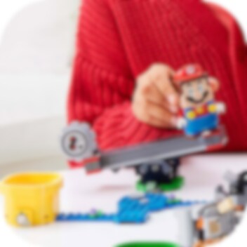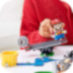 Lägg till detta roliga expansionsset till din LEGO® Super Mario startbana! Hoppa på båda ändarna av den gungande Grrrol för att vinna mynt. Få de roterande plattformarna att snurra och slå ner Reznor med spettet. Vinn belöningar från ?-blocket och rädda den blå Toad. Samarbeta med en kompis med egen LEGO® Luigi eller LEGO® Mario figur, eller tävla om vem som är den snabbaste myntsamlaren med specialröret Speed Run!