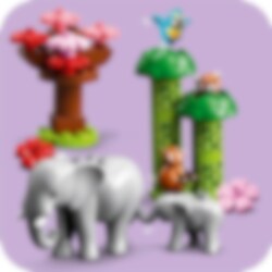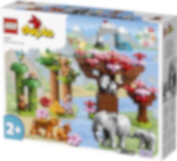 Leksetet LEGO® DUPLO® Asiens vilda djur (10974) är fullspäckat med roliga detaljer och fantastiska djur som barn från 2 år kan leka vilda djurlekar med! Massor att utforska tillsammans för förskolebarn och föräldrar Varje djurälskande barn kommer att fängslas av de oändliga lekmöjligheterna i denna myllrande asiatiska naturmiljö. Här bor stora elefanter och elefantungar, pandor och tigrar, en apa, 2 fåglar och 2 röda pandor, och det finns bambu, ett körsbärsträd och en vikbar, 3-dimensionell lekmatta. Det finns till och med en ljudkloss som spelar upp realistiska ljud och djurläten. Lekfullt lärande för små barn Alla LEGO DUPLO set är smart utformade med roliga berättelser, klara färger, mångsidiga karaktärer och en mängd detaljer för att ge din lilla byggare en STOR start i livet.