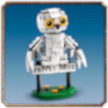 Bygg, visa upp och lek med din egen förtrollande modell av fjällugglan Hedwig! Återskapa Harrys husdjurs utseende i LEGO® stil och placera hennes huvud, vingar och stjärt i söta ställningar. Sätt Hedwig på gatuskylten för Privet Drive, där Harry Potter bodde hos familjen Dursley. Och vad finns i Harrys koffert? Ett porträtt av Harry och hans föräldrar, boken Magins historia och en trollstav!