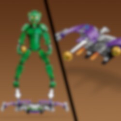 Glid in i spännande äventyr med din egen extra stora och superflexibla byggfigur av Green Goblin! Precis som i Marvel Studios film Spider-Man No Way Home, kan superskurken vrida och vända sig när han åker på sin glidare och kastar pumpabomber. Medden största skurken i Spider-Man Universe i dina händer tar all action och alla äventyr aldrig slut!