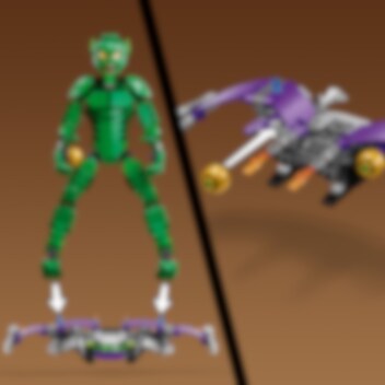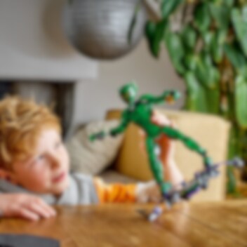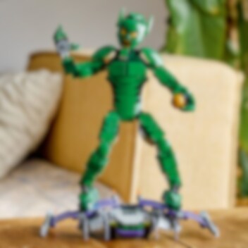 Figuren av Green Goblin i detta set med 471 delar är 24 cm hög: tillräckligt stor för episk action och tillräckligt liten för barn att ta med vart de än går.