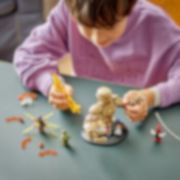Letar du efter trendiga gåvor till unga superhjältar? LEGO® Marvel Spider-Man mot Sandman: Slutstriden (76280) är en byggbar actionleksak som alla som älskar Marvels filmer garanterat kommer att vilja ha. Setet återskapar stridsscenen från Marvel Studios film Spider-Man: No Way Home och blir en fantastisk present till barn från 10 år. Detta mångfacetterade, byggbara LEGO Marvel Spider-Man set innehåller 3 skurkar: Sandman, Electro och Lizard (detta är det första LEGO Marvel setet med minifiguren Lizard). Det finns flera ställen att placera minifigurerna, så lek- och uppvisningsmöjligheterna oändliga. Barn kan vända och vrida på den helt ledade Sandman och använda hans enorma händer för att greppa tag i Spider-Man när han svingar sig ovanför med sitt flexibla ”nätrep”. Barn kan utöka den byggbara Marvelleksaken genom att kombinera den med Spider-Man – den sista striden (76261), som säljs separat. För ännu mer digitalt skoj kan byggare zooma in, rotera modeller i 3D och följa sina framsteg i den roliga, intuitiva appen LEGO Builder.