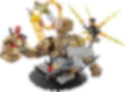 Följ med Spider-Man i ett laddat möte med 3 formidabla fiender! Sandman kan vrida och vända sig och använda sina enorma händer för att greppa tag i Spidey när han susar fram ovanför. Electro blinkar fram och skjuter högspänningsblixtar. Lizard dyker upp genom en portal och hoppar in i all action. Kan du guida Spidey genom denna ultimata slutstrid från Marvel Studios Spider-Man: No Way Home?