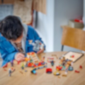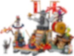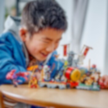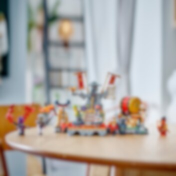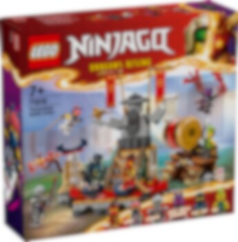 Det detaljerade setet Turneringsarena (71818) låter pojkar och flickor från 7 år återskapa den dramatiska slutstriden från säsong 2 av tv-serien NINJAGO® Drakarna vaknar. Ninjaleksetet har massor av interaktiva funktioner som erbjuder barn timmar av lek. Efteråt blir arenan en iögonfallande uppvisningsmodell på en hylla eller ett nattduksbord. Detta LEGO® NINJAGO set innehåller 2 rörliga plattformar så att barn kan iscensätta spännande strider med en ninja och en skurk, en stor trumma som de kan knuffa ner så att den rullar in i arenan och en trappa som kollapsar när de drar i en spak så att alla karaktärer i den kanar till botten. Denna byggbara ninjaleksak för barn innehåller 6 NINJAGO minifigurer. Ninjorna Kai och Sora, i turneringsrustningar och med helt nya korta katanasvärd, strider mot en samling skurkar: Cinder, en krigare i vargmask och, exklusivt för detta set, onde Jay och Tox.