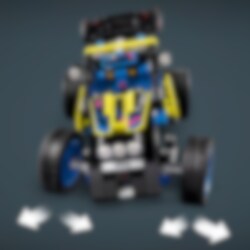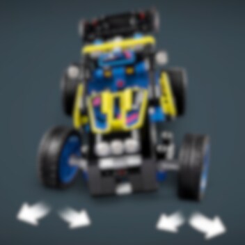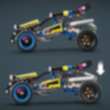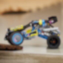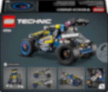 Möt en cool buggy för massor av skoj! Bygg LEGO® Technic Terrängracerbuggy och se vad den går för. Skicka iväg den i full fart i spännande buggystil. Kolla in fjädringen och motorn med 4 cylindrar. Testa sedan den coola flexibla styrningen, som gör att buggyn kan luta från sida till sida. Grymt!
