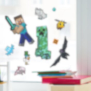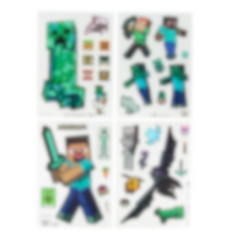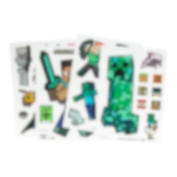 Förpackningen med 35 st. fönsterstickers som är fördelade på 4 st. ark med Minecraft tema. Skapa dina alldeles egna Minecraft scener med dessa på fönstret. Storlek: Mellan 2 till 17 cm.