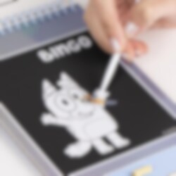 Denna pysselbok med Bluey och Bingo innehåller 6 skrapsidor där barnet använder det medföljande skrapverktyget för att skrapa fram färgglada motiv – och 6 sidor att färglägga själv med tusch eller kritor. En rolig och kreativ aktivitet som passar perfekt för alla små fans av serien Bluey.