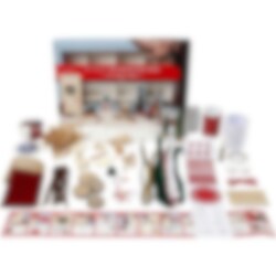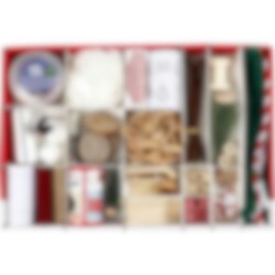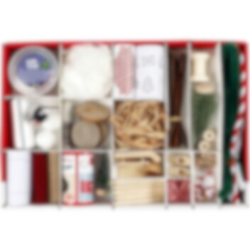 Innehåller: Silk Clay, metallpapper, frigolitkulor, filt, jutetyg, filt, jultyg, julgran, träspolar, kälke, träskor, skärbräda, kavel, skål, bomullsgarn, pärlor, pompomer, klädnypor, dubbelhäftande tejp, träpinne, lim, träskivor, piprensare, bastsnöre, färgblyerts.