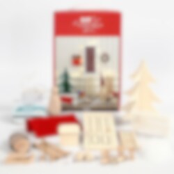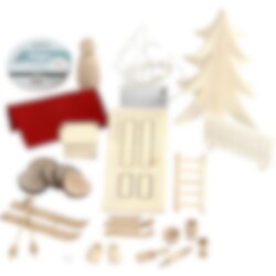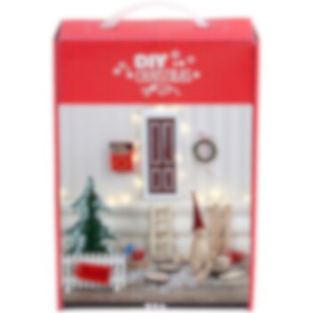 Jättefint Do it Yourself - kit av trä som inkluderar en dörr med en massa roliga vinterinspirerande tillbehör. Sätt upp Nisses dörr på en golvlist inför julen och gör det ännu mysigare med hjälp de tillhörande dekorationerna. Det som ingår är bland annat en stege, en brevlåda, ett staket, en gran och en batteridriven LED slinga. Observera att batterier ej ingår.