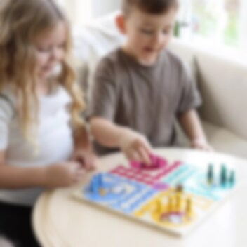 Spelet är tillverkat i trä och innehåller spelplan, 16 pjäser i fyra färger, tärning och spelregler. En lekfull familjeaktivitet som bjuder på både spänning och skratt.