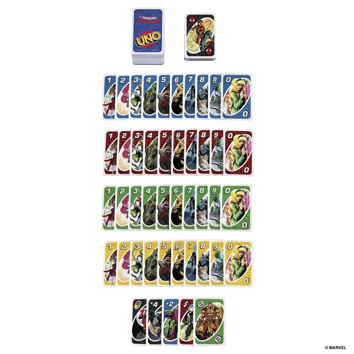 Roligt UNO-kortspel med Spiderman-tema för 2-10 spelare. Förpackningen innehåller 112 kort, inklusive en unik Spiderman-anpassad regel som gör spelet ännu mer spännande. Instruktioner på engelska medföljer.