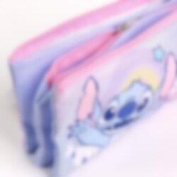 Håll ordning på pennor, sudd och småsaker med detta fina pennfodral med Stitch! Med tre separata fack finns det gott om plats för allt du behöver till skolan eller pysselstunden. Den lila designen med rymdmotiv och rosa dragkedja gör det både praktiskt och charmigt – en favorit bland Stitch-fans!