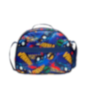 Lunchväskan är 25,5 x 20 x 10 cm stor och har ett stort fack med dragkedja och en axelrem som är 120 cm lång.