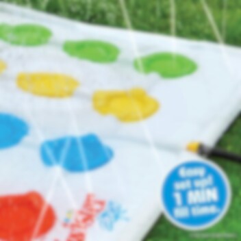 Twisterspel som i denna version kommer göra dig helt genomblöt. Kan du klara av att stå kvar när det sprutar vatten upp från alla cirklarna på mattan?