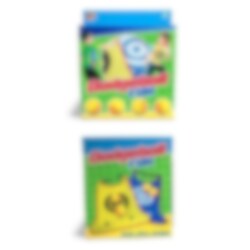 Förpackningen inkluderar 2 st. västar i färgerna blå och gul med kardborrmaterial på framsidan och 4 st. bollar som är tillverkade av polyester.