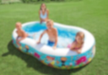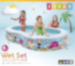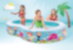 Intex Barnpool med roliga snorkelmotiv blir den ultimata badupplevelsen i trädgården. Poolen har en storlek på 262 x 160 x 46 cm och rymmer 700 liter. Från 3 år med vuxen tillsyn.