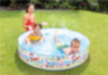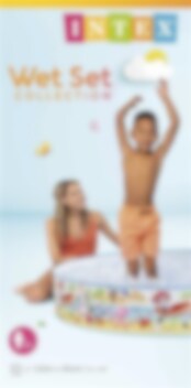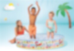 Intex barnpool med skojigt strandmotiv blir en rolig baduppelvelse som du kan ha i trädgården. Poolen har en storlek på 152 x 25 cm och rymmer 443 liter. Från 3 år med vuxen tillsyn.