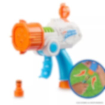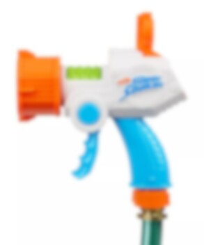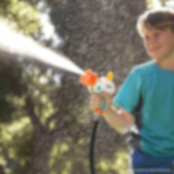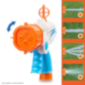 Ta sikte och gör dina motståndare genomblöta med den här vattenpistolen. Skottet drivs av vattnet från din trädgårdsslang och har en räckvidd på upp till 4-5 meter. Du kan välja mellan 4 olika munstycken.