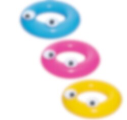 Supercool badring med ögon som både barn och vuxna kan njuta av under sommarens varma dagar. Badringen har ett mått på ca 91 cm och finns i tre st. färger (blå, gul och rosa) som säljs osorterade och styckvis.