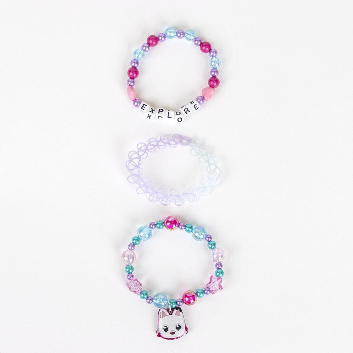 Dessa Gabby's Dollhouse armband i 3-pack är ett roligt tillägg till varje liten modeentusiasts accessoarsamling. Varje förpackning innehåller tre armband i mixade färger, dekorerade med motiv från den populära serien Gabby's Dollhouse.