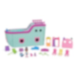 Stig ombord på detta fantastiska "Cat-Tastic Cruise Ship" från Gabby's Dollhouse! Detta färgsprakande skepp kommer med 18 olika delar och erbjuder färggranna och färgskiftande ljus som kommer att förtrolla barnen.