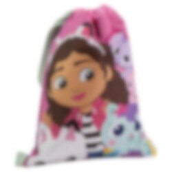 Denna färgglada gympapåse med motiv från Gabby's Dollhouse är perfekt för barn som älskar äventyr med Gabby och hennes kattvänner.