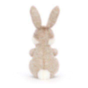 Denna vänliga hare sitter upprätt och visar upp sin fantastiska, brunspräckliga päls med fluffigt gräddvit på mage, svans och kinder. Med sina lena tassar tassar i mockaimitation, tufsiga vita ögonbryn och piggt spetsade öron är denna glada lilla knubbis en bra lyssnare samt en gosig och trogen vän med en och annan busig idé. Tillverkad av 100% polyester och handtvättas vid behov.