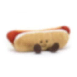 Möt den här söta och fåniga varmkorven som verkar promenera runt på manchesterfötter, en korv som älskar nöjesparker och som inte kan vänta med att prova alla åkattraktioner och se sevärdheterna. Ett leende mellanmål med en härligt fluffig bulle i beige och vit päls fylld med en röd Frankfurter korv toppad med ett sträng av senap. En fånig och kramgo följeslagare som kan förgylla din dag. Tillverkad av 87% polyester, 13% bomull och handtvättas vid behov.