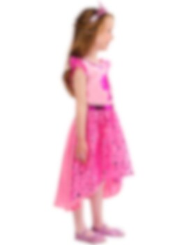 Kliv in i Barbies glittrande värld! Det här rosa setet innehåller en vacker klänning och smycken, perfekt för barn som älskar glitter, glamour och lek.
