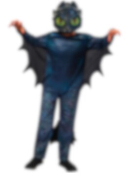 Förvandla barnet till den legendariska draken Tandlöse från Draktränaren! Denna detaljerade maskeraddräkt har realistiskt fjällmönster, stora tygvingar och en lång draksvans. Den medföljande masken med stora gröna ögon sätter pricken över i:et.