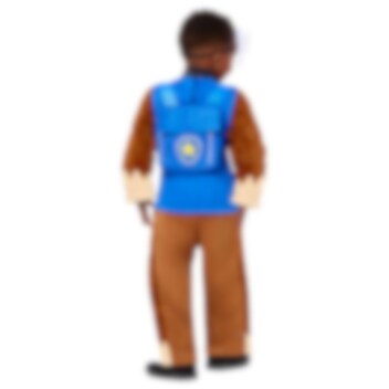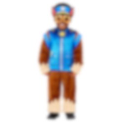 Paw Patrol Chase Maskeraddräkt Deluxe inkluderar en jumpsuit i Chases färger, en halvmask tillverkad av plast som föreställer Chases ansikte och en ryggsäck.
