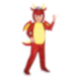Dragon Maskeraddräkt inkluderar en jumpsuit i fina färger med tillhörande svans, vingar och huva som efterliknar en drake.
