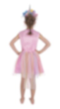 Förvandla ditt barn till en sagolik enhörning med denna magiska maskeraddräkt! Perfekt för maskerader, födelsedagskalas eller lekfulla äventyr hemma. Dräkten har en glittrande topp, en fluffig tyllkjol i härliga pastellfärger – och ett matchande enhörningsdiadem med horn och öron för en komplett look.