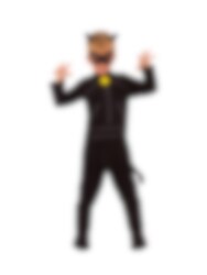 Miraculous Ladybug Maskeraddräkt Cat Noir inkluderar en svart jumpsuit med tillhörande svans, ögonmask, hårband med motiv av kattöron och skoöverdrag. Allt är tillverkat i 100 % polyester.