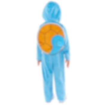 - Innehåller: Blå jumpsuit med tillhörande huva som föreställer Squirtles ansikte och ett mjukt sköldpaddeskal på ryggen.