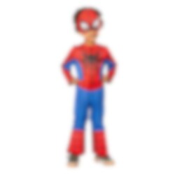 Kliv in i äventyret som den fantastiska Spidey med denna tuffa barnkostym. Dräkten är prydd med Spideys ikoniska färger, spindelnätsmönster och den välkända Spiderman-logotypen på bröstet. Den medföljande masken matchar perfekt dräkten och tillsammans skapar de den ultimata superhjältelook.