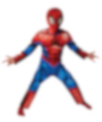 Spiderman kostym med vadderat muskelbröst och snygga tryck med kardborrestänging baktill samt en huva av tyg. Perfekt till den som älskar Spiderman.