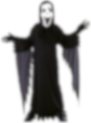 Känn dig som en riktig skräckfilmshjälte med denna Black Ghost Maskeraddräkt för barn, inspirerad av Scream. Setet inkluderar en dräkt och en mask, vilket gör det till det perfekta valet för att göra ett oförglömligt intryck på nästa Halloweenfest.