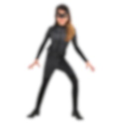 Catwoman Maskeraddräkt inkluderar en jumpsuit, ett bälte och en mask som efterliknar den mystiska Catwoman från Batman universumet.