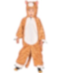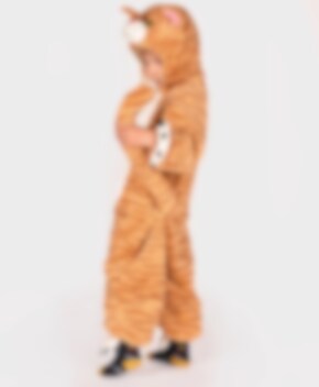 Känn dig som en charmig och lekfull katt med denna Katt Jumpsuit Maskeraddräkt för barn. Dräkten är i en orangebrun spräcklig färg och kommer med en vit vadderad nos, lång svans och mjuka tassar. En fastsydd huva med öron och nos fulländar din katt-look. Perfekt för små äventyrare som är redo för en mysig och rolig dag!