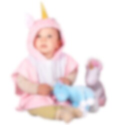 Maskeraddräkten inkluderar en rosa cape som föreställer en supergullig enhörning med guldglittrigt horn och med fina detaljer. Capen är tillverkad av 100 % polyester, ca 45 cm lång och passar barn mellan 1-4 år som har storlek 86-110.