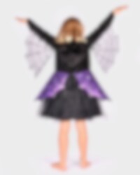 Känn dig som en modig och äventyrlig spindelhjältinna med denna Spidergirl Maskeraddräkt för barn. Klänningen är full av fina detaljer som en glittrig kjol, plastspindel på bröstet och transparenta vingar under ärmarna dekorerade med silverpaljetter. Det matchande diademet med en lila rosett och plastspindel fulländar din look.
